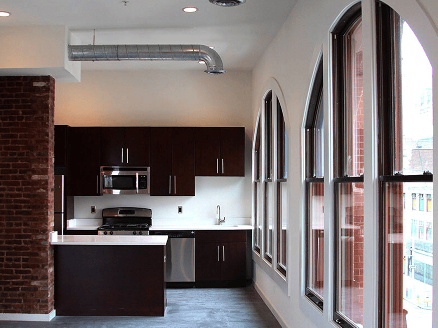 Steps from the Prudential Center and Newark Penn Station, The Columbian is a renovated mixed-use development with 72 modern apartments and ground-floor retail, including Dinosaur Bar-B-Que. Originally built in 1890, the building retains its dark red brick façade, rooftop terraces, and historic details, seamlessly blending vintage charm with contemporary living.